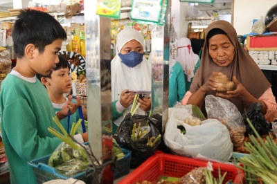 Mengusung Tema Kearifan Lokal, Siswa kelas 4 Belanja ke Pasar Tradisional.