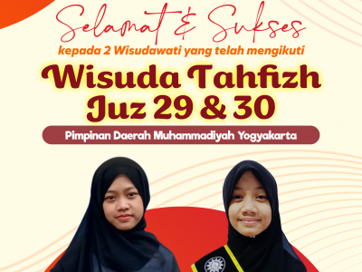 2 siswi SD Muhammadiyah Sokonandi telah mengikuti Wisuda Tahfizh Juz 29 dan 30 yang diselenggarakan oleh Pimpinan Daerah Muhammadiyah (PDM) Kota Yogyakarta, 10 Mei 2025 lalu.