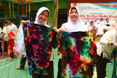 Praktik Tye Dye di Baju, P5 Kelas 5