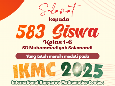 Selamat kepada 583 Siswa dari kelas 1-6 SD Muhammadiyah Sokonandi yang telah meraih pada IKMC (International Kangaroo Mathematics Contest) Tahun 2025.
